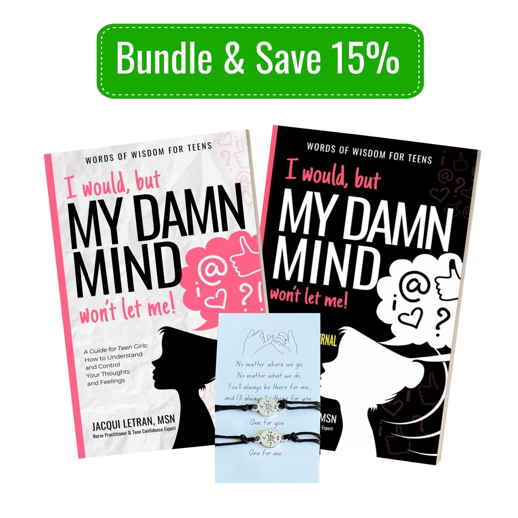 Teen Girls: Damn Mind Paperback Book, Guided Journal, and Bracelet Bundle